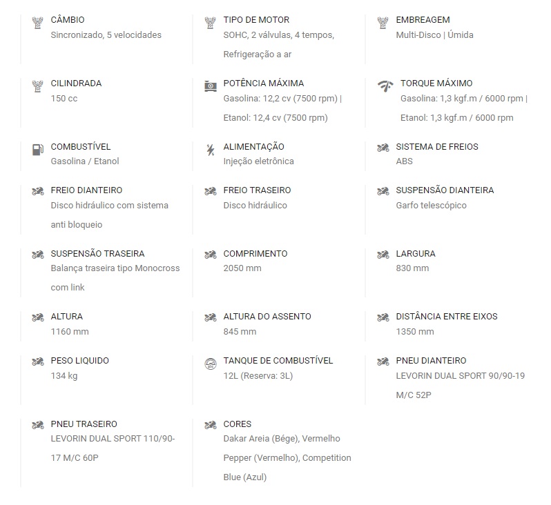 A Crosser Z é a escolha perfeita para quem procura uma moto flex de 150cc que entrega resistência para o dia a dia, seja no asfalto ou na terra. O motor durável e econômico, conta com a tecnologia Blueflex, para você escolher entre gasolina, etanol ou ambos, o que for mais econômico.